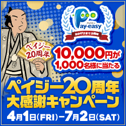 おかげさまで20周年 10,000円が1,000名様に当たるペイジー20周年大感謝キャンペーン!!