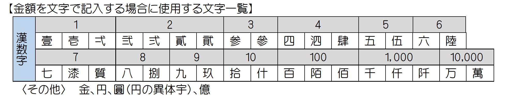 (1)アラビア数字(算用数字、1、2、3…)でご記入の場合