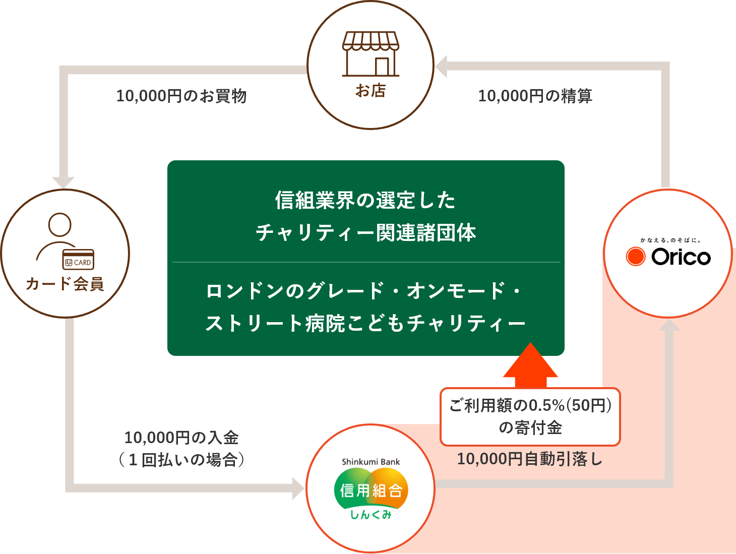 ピーターパンカードでショッピングすると、ご利用額の0.5%が信組業界の選定したチャリティ関連諸団体やロンドンのグレート・オーモンド・ストリート病院こどもチャリティに寄付されます(カードご利用者にご負担をかけることはありません)。この寄付金は日本の障害や難病とたたかっている子供たちやその家族への支援活動、および子供たちの健全育成活動に、さらに世界の病気の子供たちに役立てられます。