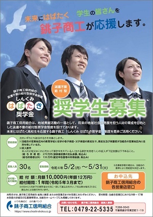 未来にはばたく高校生を応援する銚子商工「しんくみ はばたき奨学金」制度を是非ご活用ください。